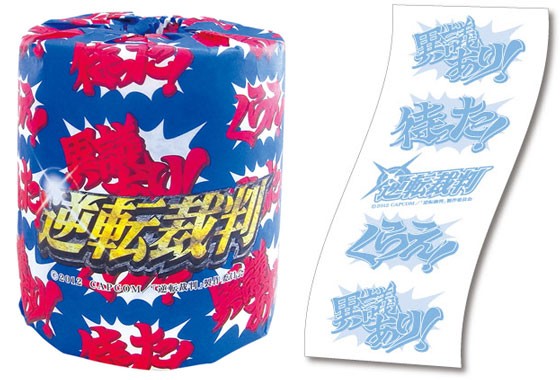 Live-action Gyakuten Saiban (逆転裁判) filmen, også kendt som Ace Attorney, får premiere i de japanske biografer den 11 februar 2012. For at fejre filmens premiere udgiver Capcom række merchandise herunder dette specielle toilet papir, der koster 420 yen per rulle.