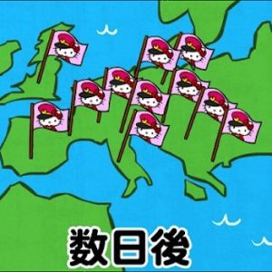Hello Kitty forsøger åbenbart at komme af med sit søde image og forsøger mere aggressivt at erobre verden. I det seneste samarbejde har Hello Kitty nemlig slået sig til Secret Society Eagle Talon (秘密結社 鷹の爪). Det er en populær serie flash animationer, der handler om Eagle Talon’s fejlede forsøg på at overtage verdensherredømmet.