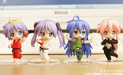 Der er kommet rigtig, rigtig, rigtig mange figurer med pigerne fra Lucky Star, især nendoroids, og nu kommer der et sæt med puchi nendoroids (de små) hvor de er klædt ud som personer fra Street Fighter. Tsukasa er Ken, Kagami er Ryu, Konata er Guile og Miyuki er C. Viper. Deres valg af cosplay emner…