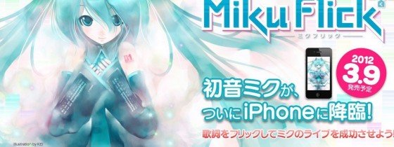 Sega har annonceret at de udgivet et Hatsune Miku rytme spil til iOS Devices (iPhone, iPod Touch, iPad). Spillet hedder Miku Flick-ミクフリック- og bliver udgivet på Miku Dag (3/9) i iTunes App Store til 1200 yen. Spillet er ikke som de andre rytme spil udgivet af Sega, idet man ikke skal trykke på en knap…